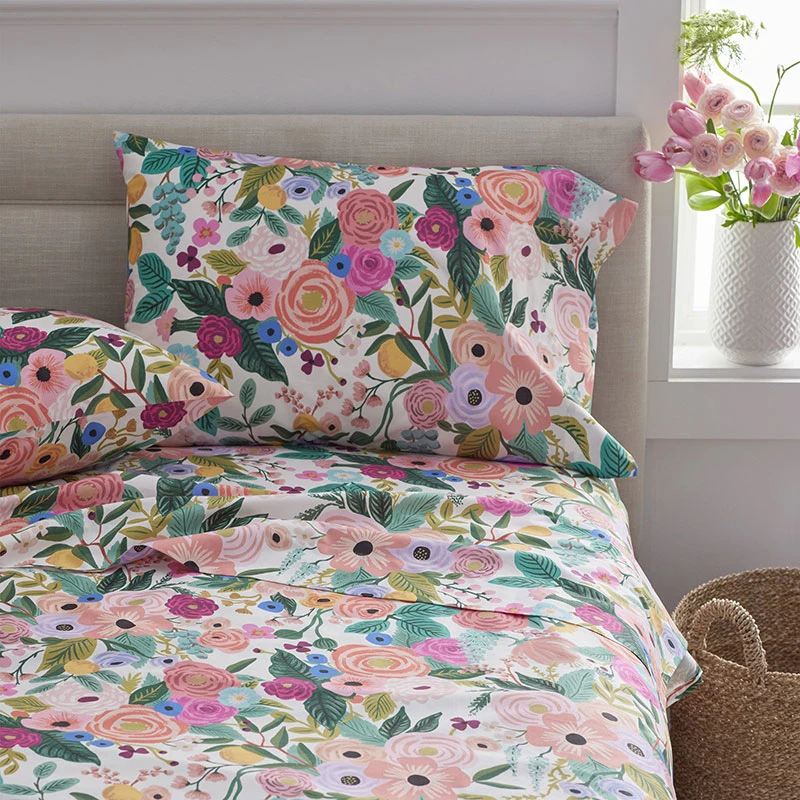 Garden Party Classic Cool Cotton Percale Bed Sheet Set – Multi, Twin